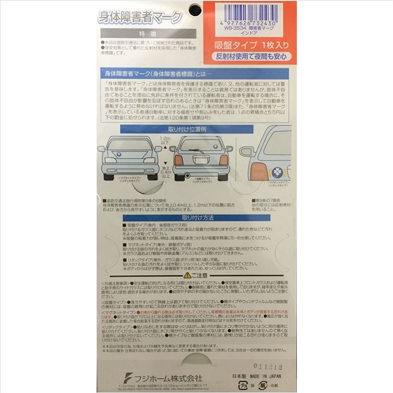 フジホーム 身体障害者マーククローバー 吸盤