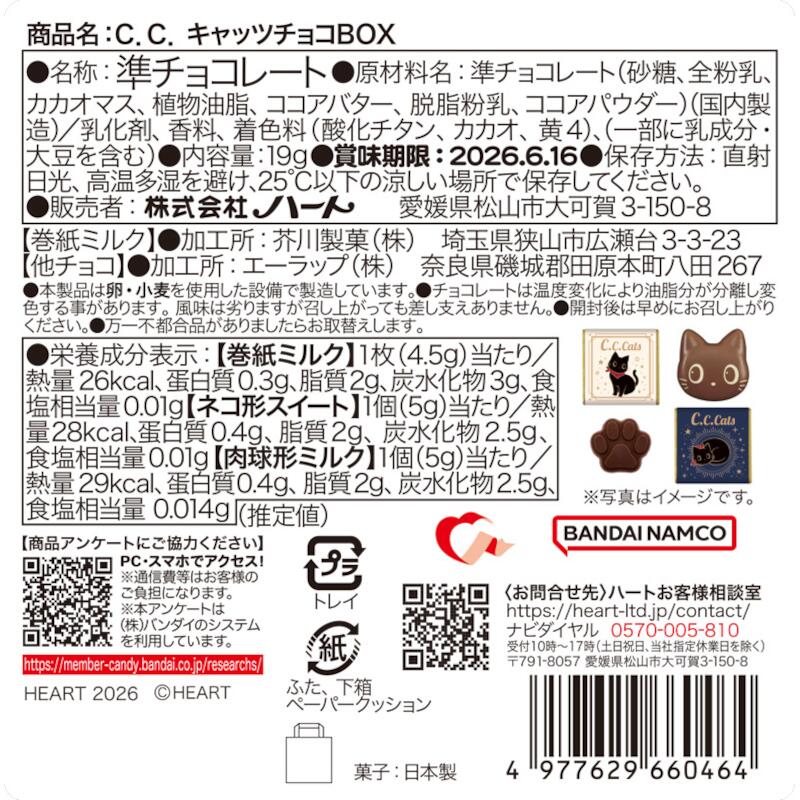 - ●原材料名:準チョコレート(砂糖、全粉乳、カカオマス、植物油脂、ココアバター、