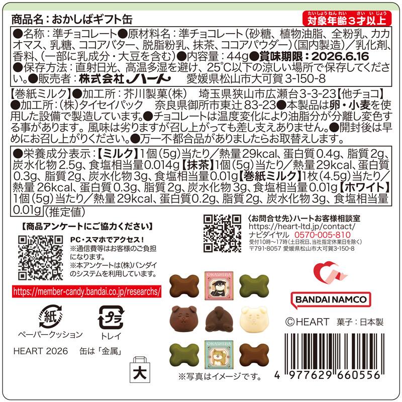 - ●原材料名:準チョコレート(砂糖、植物油脂、全粉乳、カカオマス、乳糖、