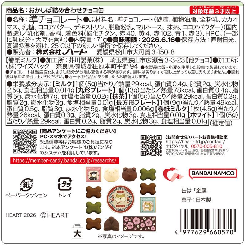 - ●原材料名:準チョコレート(砂糖、植物油脂、全粉乳、カカオマス、乳糖、