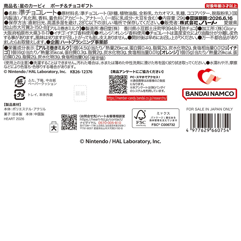 - ●原材料名:準チョコレート(砂糖、植物油脂、全粉乳、