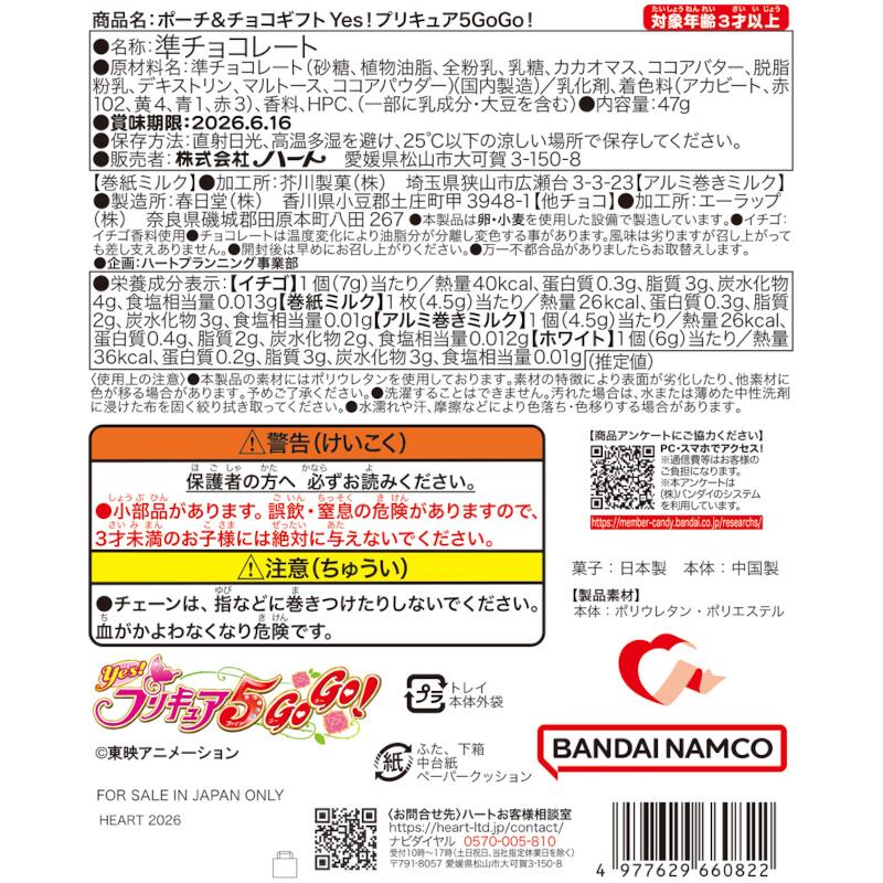 - ●原材料名:準チョコレート(砂糖、植物油脂、全粉乳、乳糖、カカオマス、