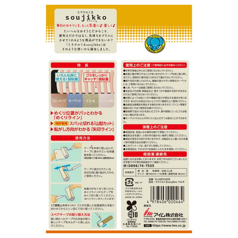 ●めくり位置がすぐわかる「めくりライン」、特許取得 カット簡単「山型カット」、転がし方向がわかる「矢印ライン」が特長です