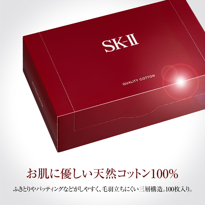 ふきとりやパッティングなどがしやすく、毛羽立ちにくい三層構造。お肌に優しい天然コットン100%。100枚入り。