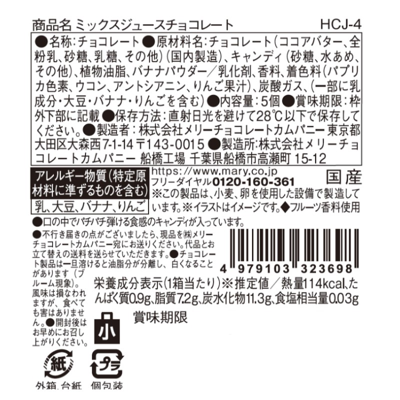 - メリーチョコレート はじけるキャンディチョコレート。 ミックスジュースチョコレート 5個