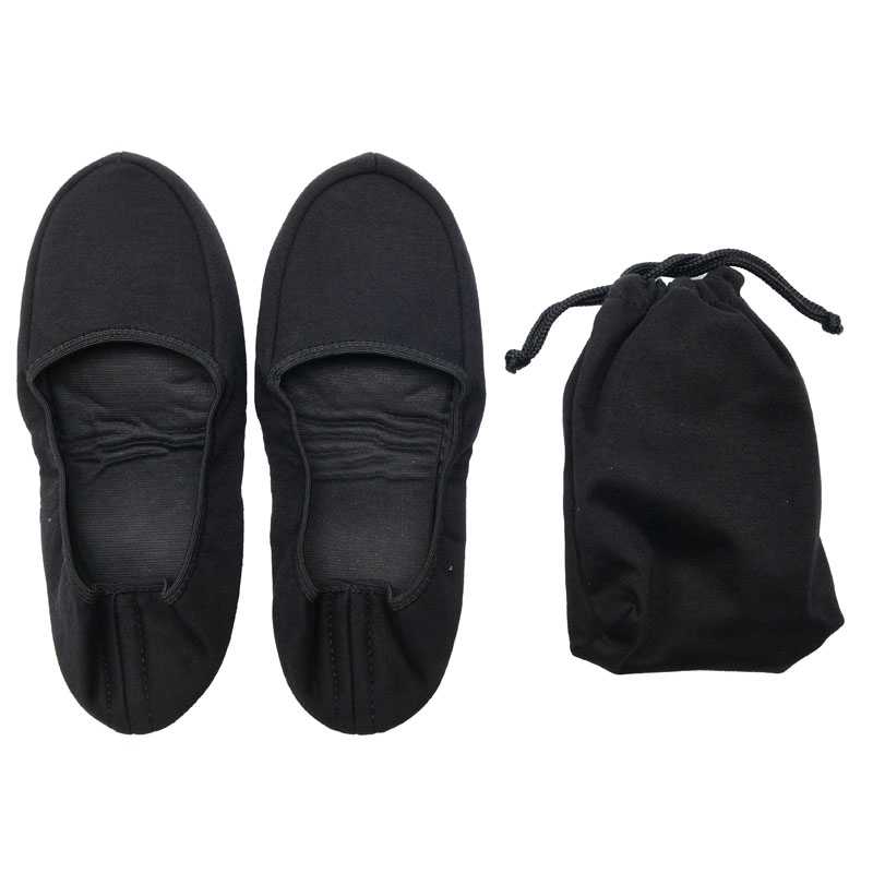 二つ折りのかかと付きスリッパです。携帯に便利な巾着ポーチ付き。