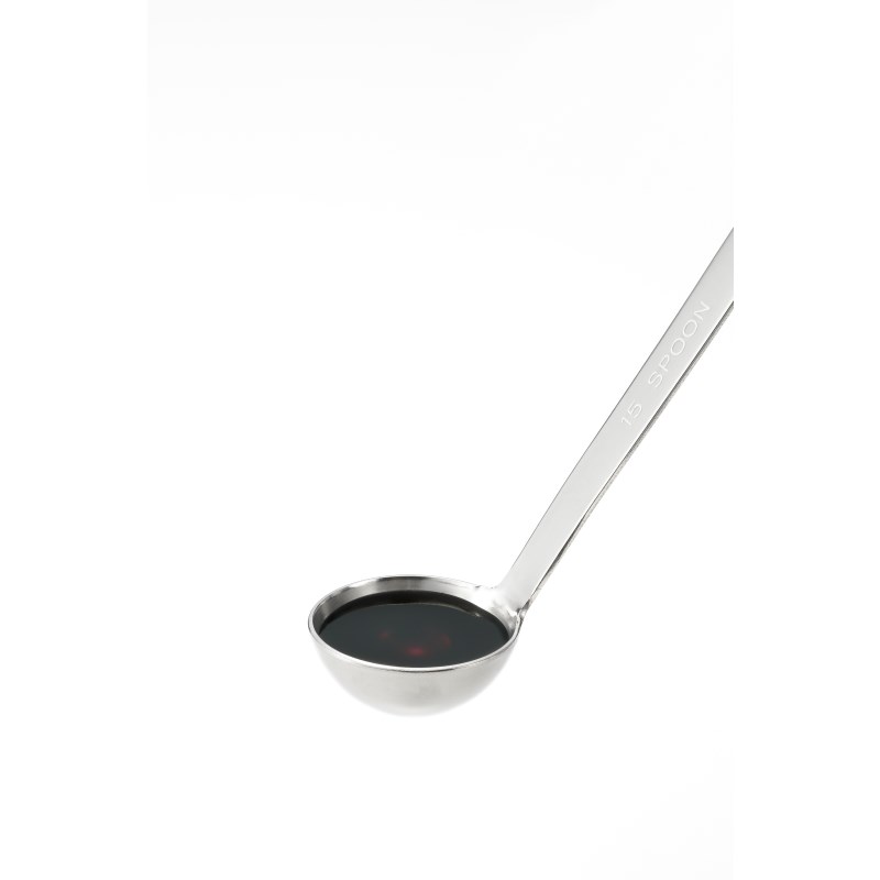 お玉タイプなのですくいやすい。ペースト状の調味料もまぜやすい。大さじ15ml小さじ5ml。