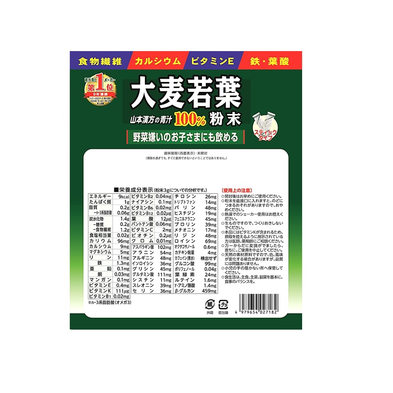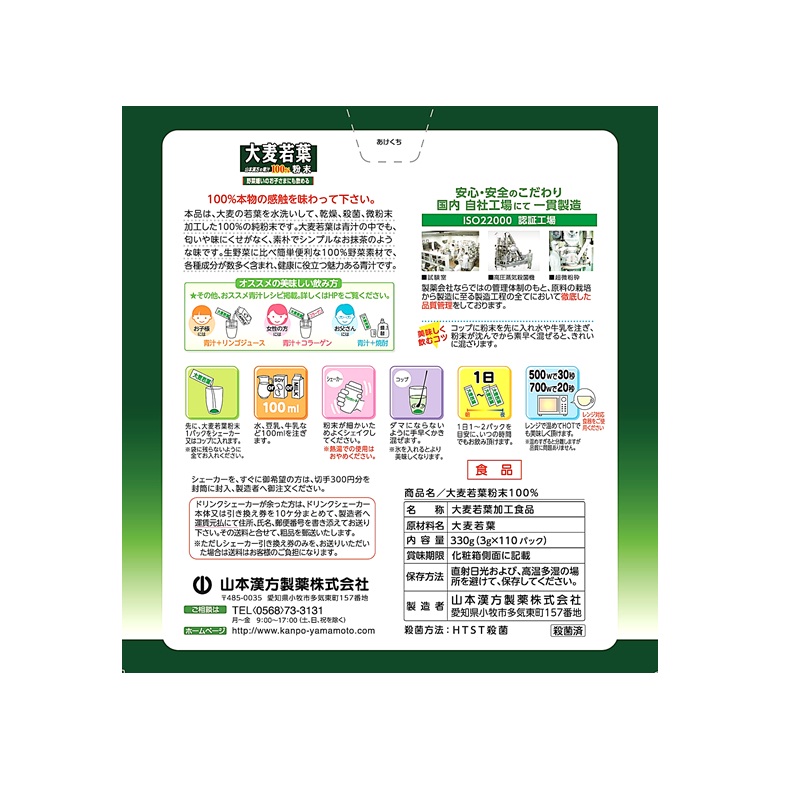 大麦若葉を微粉末加工した100%純粉末を使用。