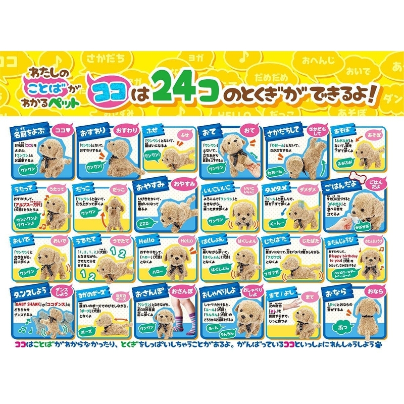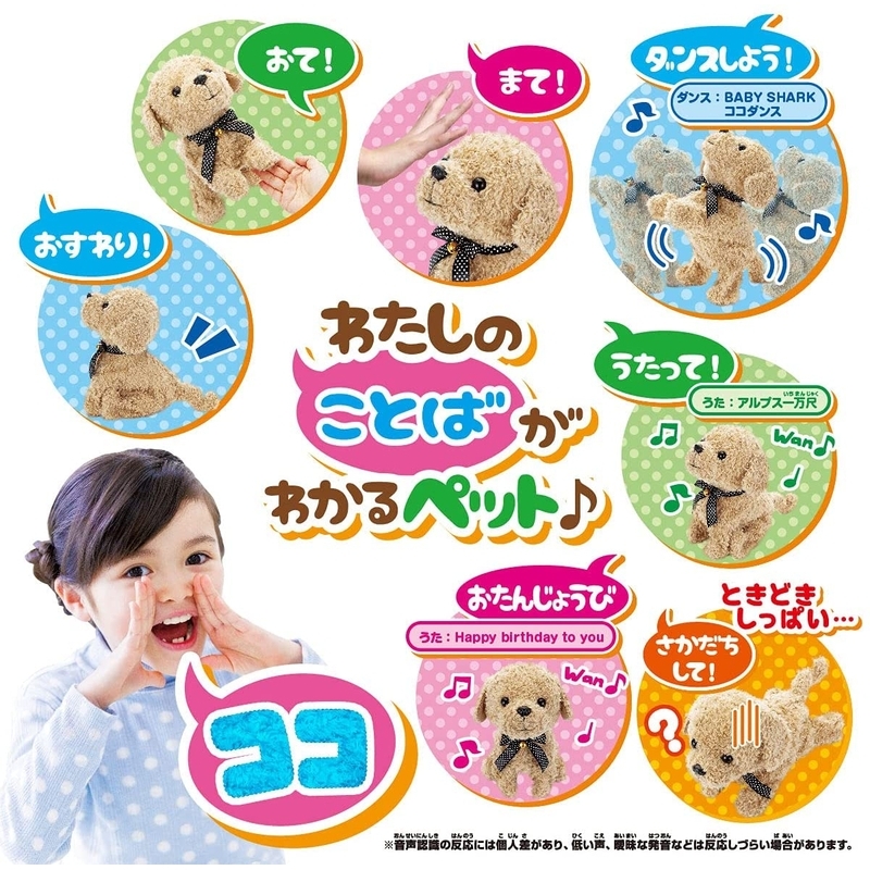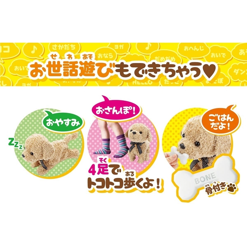 お世話遊びも!立つ、座る、寝る、歩く、ワンワンお返事、ダンス等