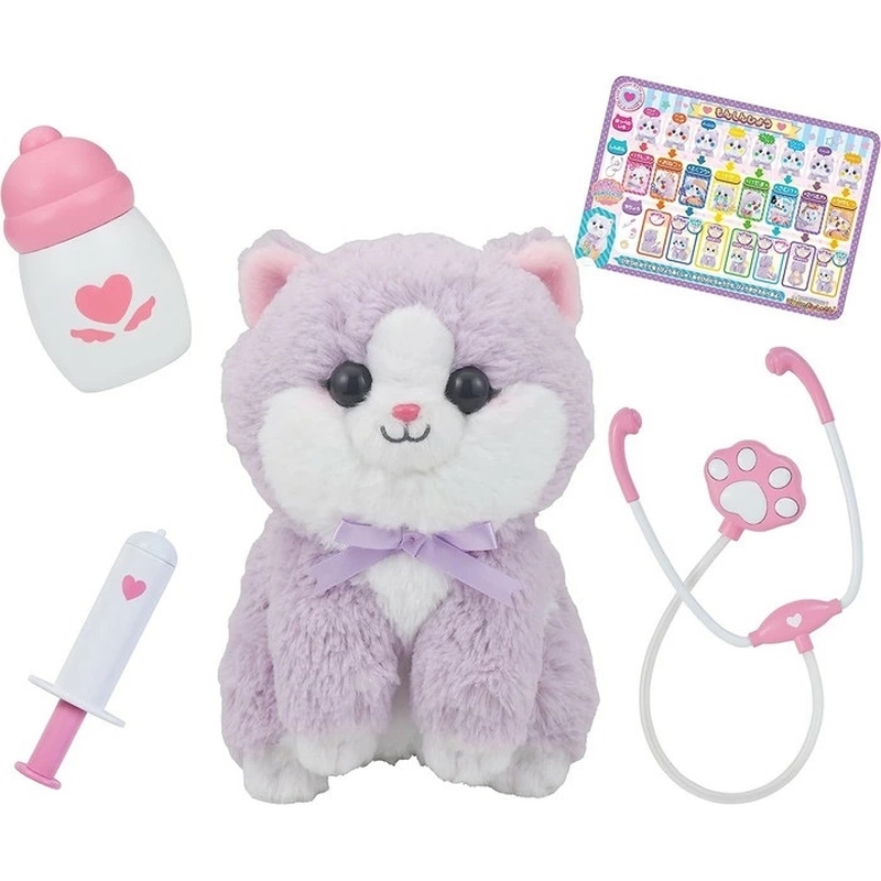 ・こねこ本体×1体、注射器×1個、おくすりミルク×1個、聴診器×1個、問診票×1枚