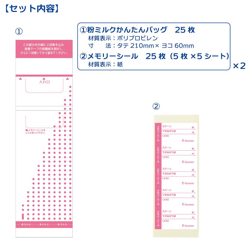 粉ミルク用スプーンの杯数とできあがり量等が書けるメモリーシール付。
