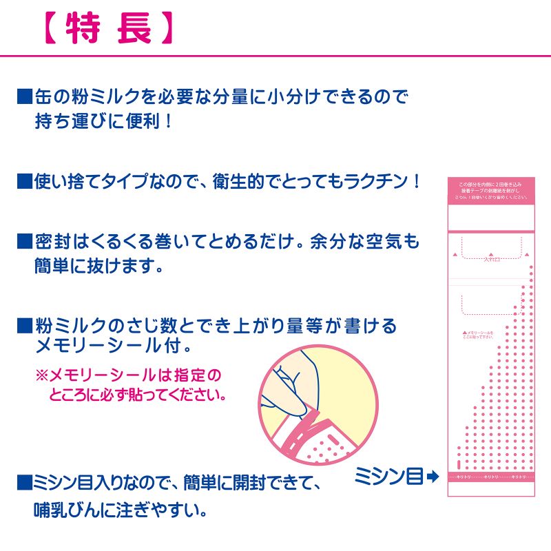 ミシン目入りなので、簡単に開封できて、哺乳びんに注ぎやすいです。