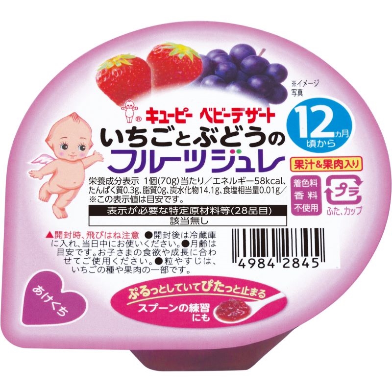 - 砂糖(国内製造)、いちご、濃縮ぶどう果汁/ゲル化剤(増粘多糖類)、クエン酸、リン酸カルシウム