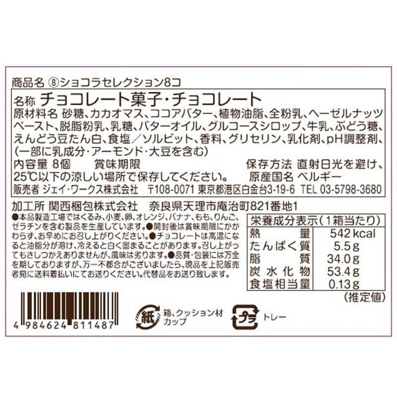ガナッシュやキャラメルなど、ベルギー直輸入のショコラ詰合せ。