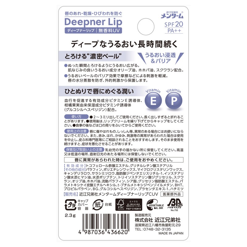 ●うるおいベールのバリア効果で摩擦などによる刺激を軽減。唇の水分蒸散を防ぎ、外的刺激から保護します。