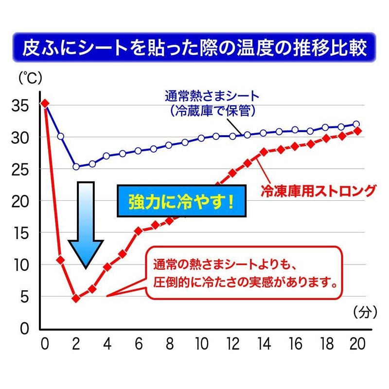 マイナス10℃の凍結持続ジェルがじっくり溶け出しおでこを強く冷やします。