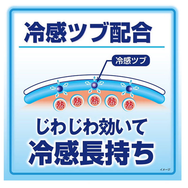 冷たさへのこだわり=つぶつぶの「冷感カプセル」を配合しています、冷たさがあとからじわじわ効いて、冷感を長く保ちます。