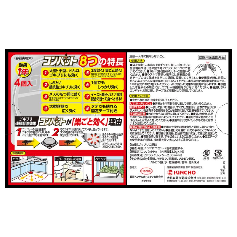 (1)コンバットの誘引作用でゴキブリが容器に入り、中のベイト剤(エサ)を食べます。