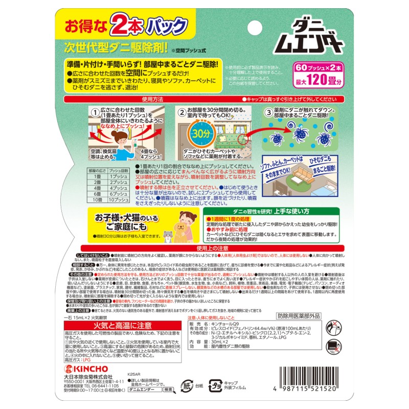 ●空間にプッシュするだけ家中まるごとダニ駆除。お得な2本パック。