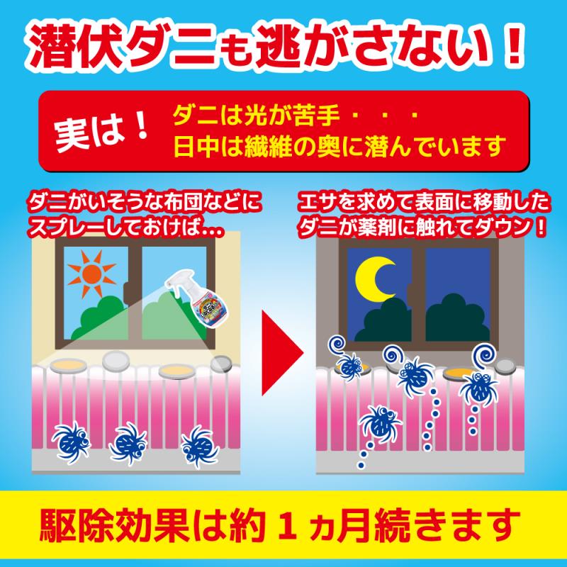 - ダニの駆除+予防のW効果。寝具やソファー、畳にも。