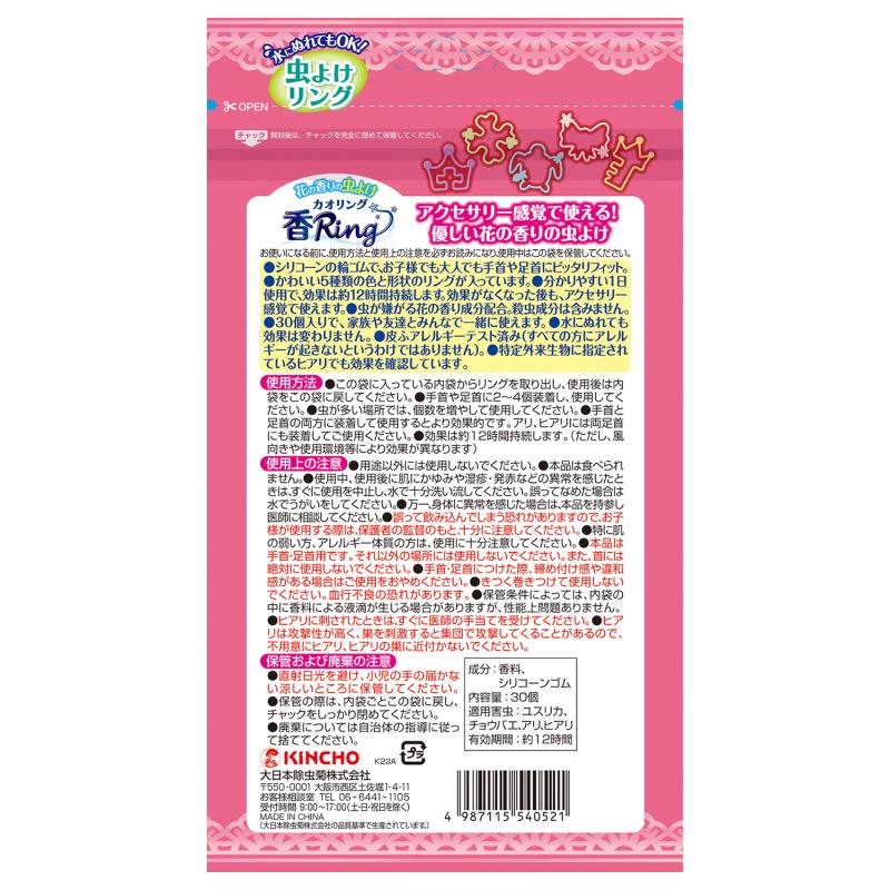 - 伸縮性の虫よけリング。虫よけ効果が約12時間持続。