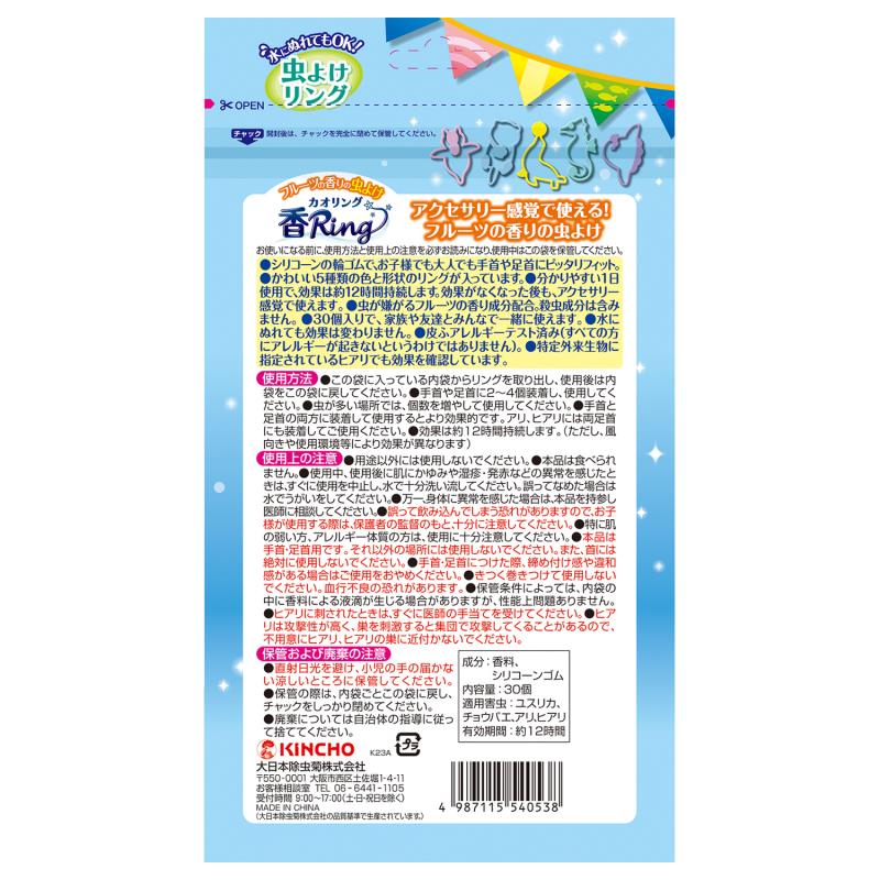 - 伸縮性の虫よけリング。虫よけ効果が約12時間持続。