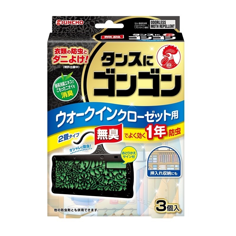 長タイプだから防虫成分がしっかり揮散し、広いウォークインクローゼットで高い防虫効果が得られます(※通常のゴンゴンクローゼ