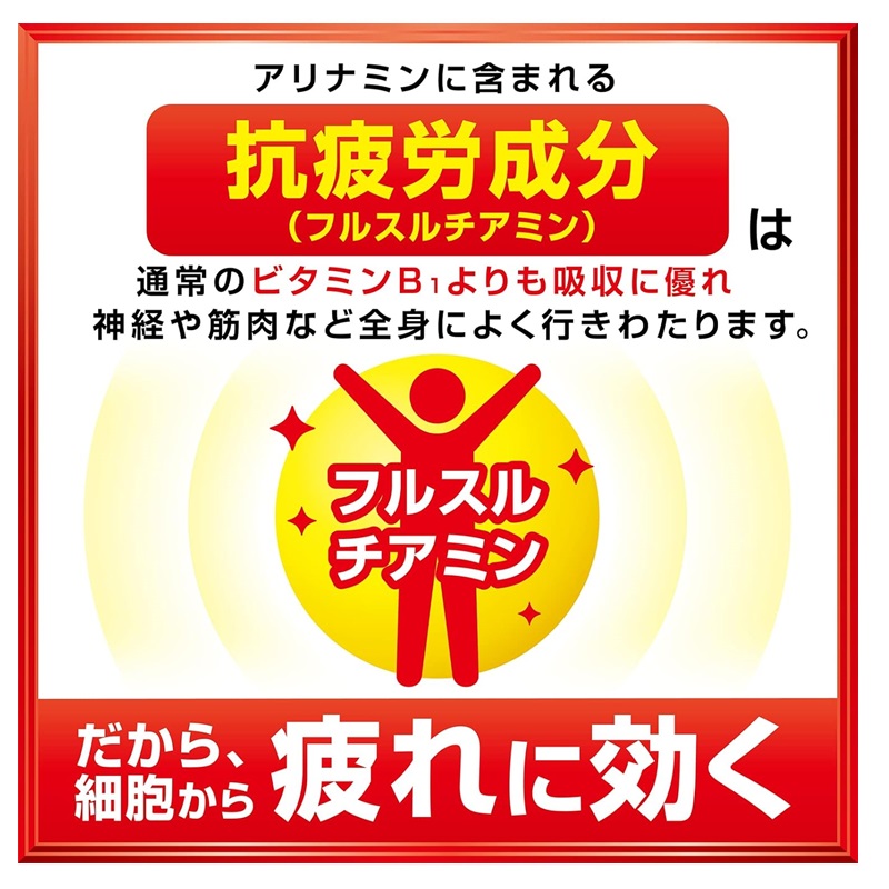 フルスルチアミン塩酸塩に加えて脂肪代謝に役立つカルニチン塩化物やタウリンなどを配合しています。