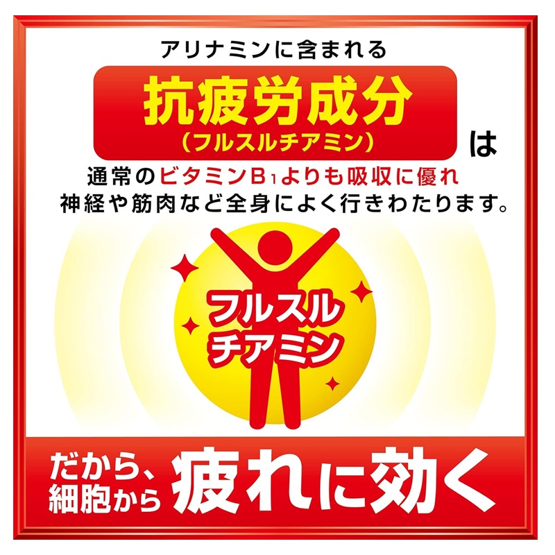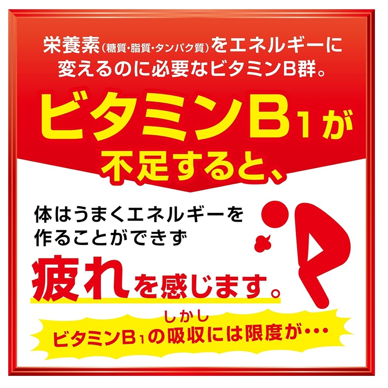 エネルギー産生に重要な役割を担うビタミンB1誘導体「フルスルチアミン塩酸塩」など9つの有効成分が、肉体疲労時の栄養補給、