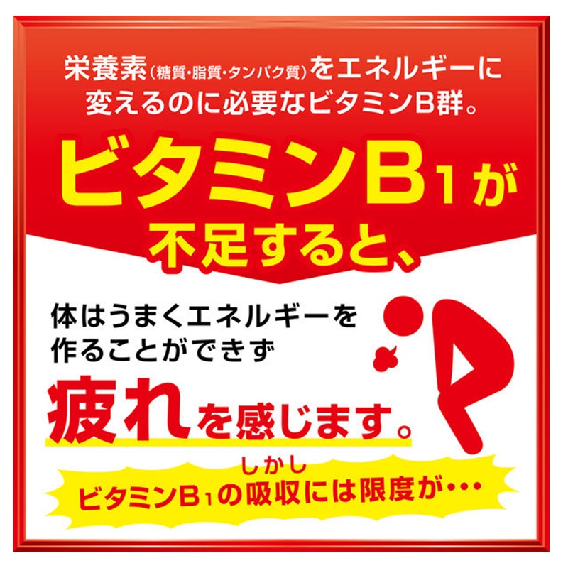 抗疲労成分「フルスルチアミン」とビタミンB2やB6などのビタミンB群を配合、疲労の回復、集中力の維持・改善によく効きます