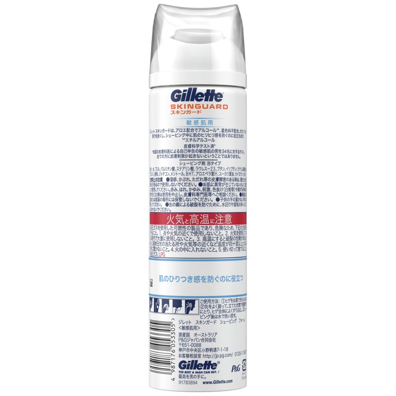 ジレットスキンガードは、アロエ配合でアルコール、着色料不配合。