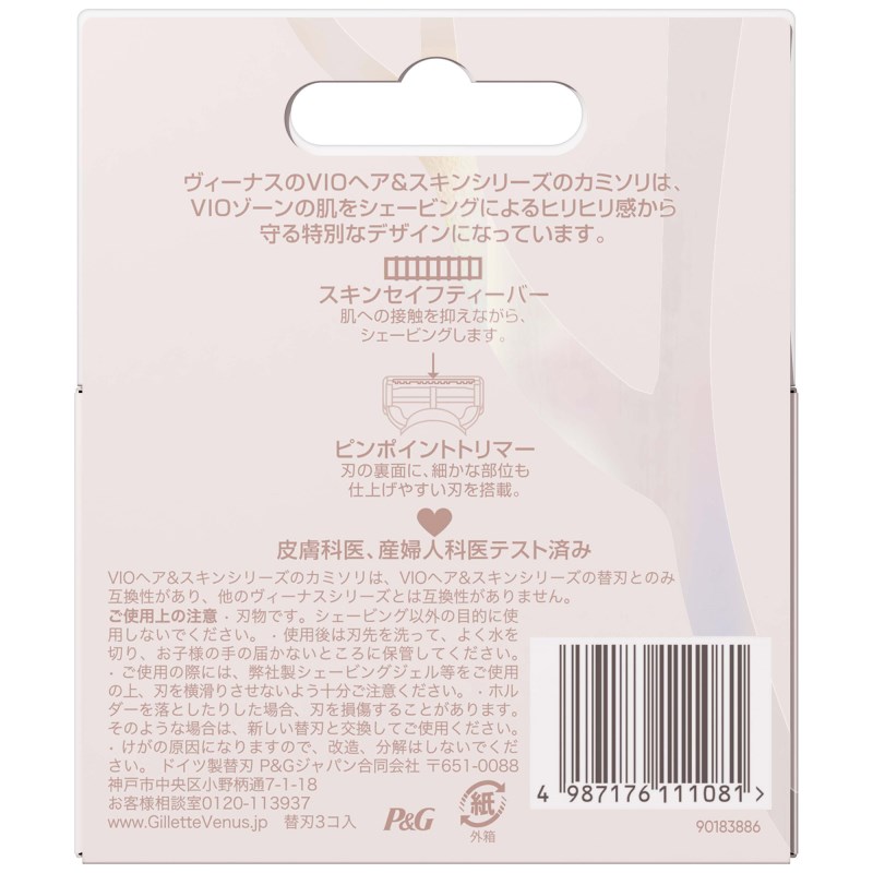 ヴィーナスのVIOヘア&スキンシリーズのカミソリは、VIOゾーンの肌をシェービングによるヒリヒリ感から守る特別なデザイン