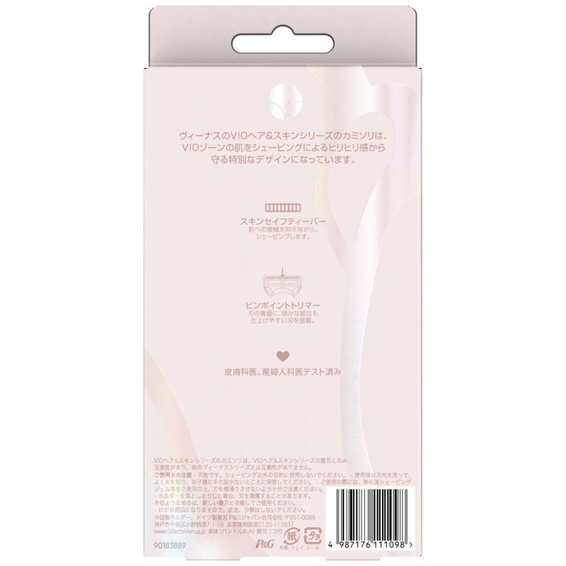 ヴィーナスのVIOヘア&スキンシリーズのカミソリは、VIOゾーンの肌をシェービングによるヒリヒリ感から守る特別なデザイン