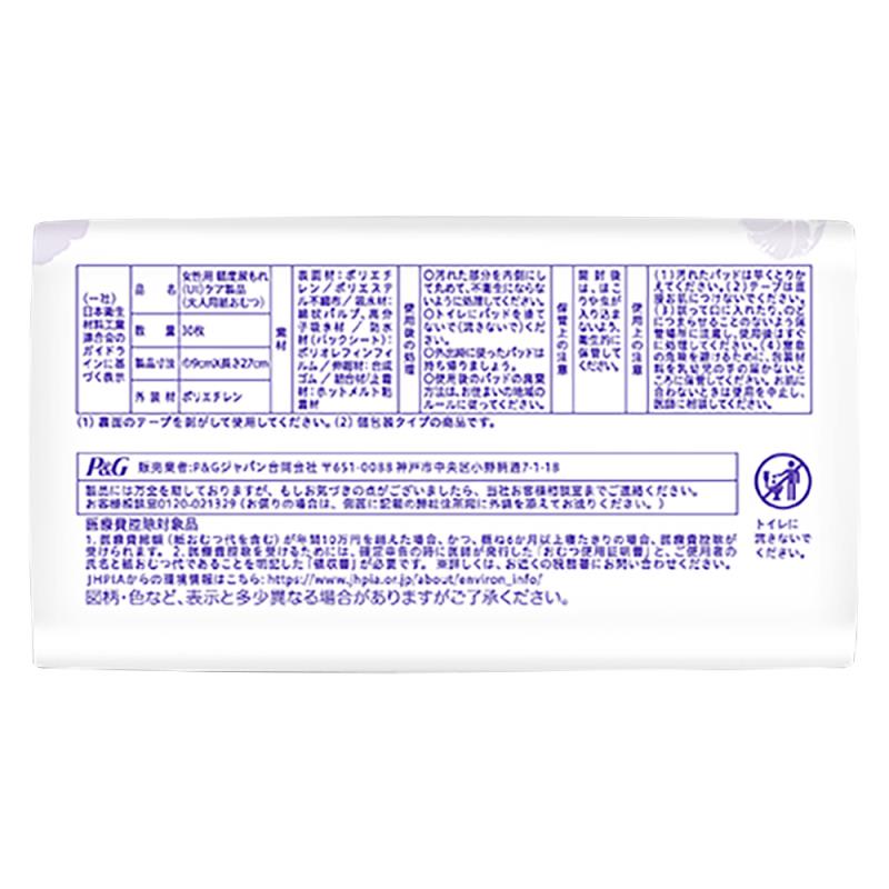 - ●表面材…ポリエチレン、ポリエステル不織布●吸水材…綿状パルプ、高分子吸水材●防水材(バックシート)…ポリオレフィンフィ
