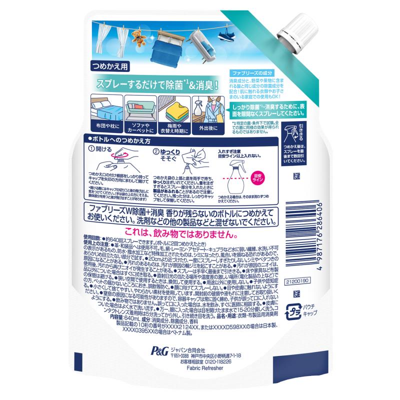 ●ファブリーズの成分…消臭成分と、野菜や果物に含まれる酸と同じ成分の除菌成分を配合