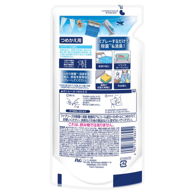 ●ファブリーズの成分…消臭成分と、野菜や果物に含まれる酸と同じ成分の除菌成分を配合