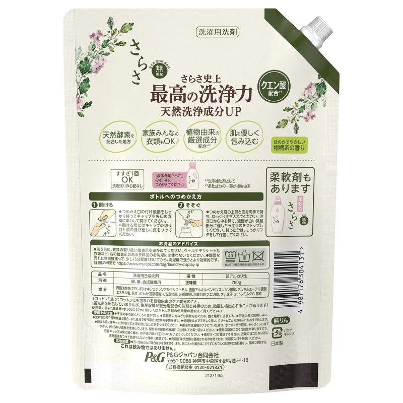 - さらさ史上最高の洗浄力。天然洗浄成分UP