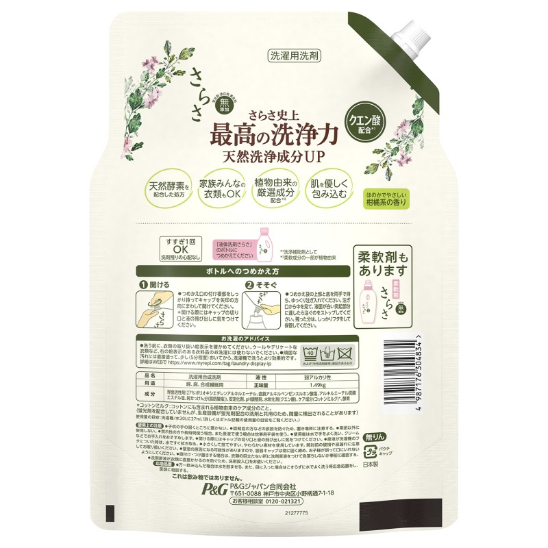 - さらさ史上最高の洗浄力。天然洗浄成分UP