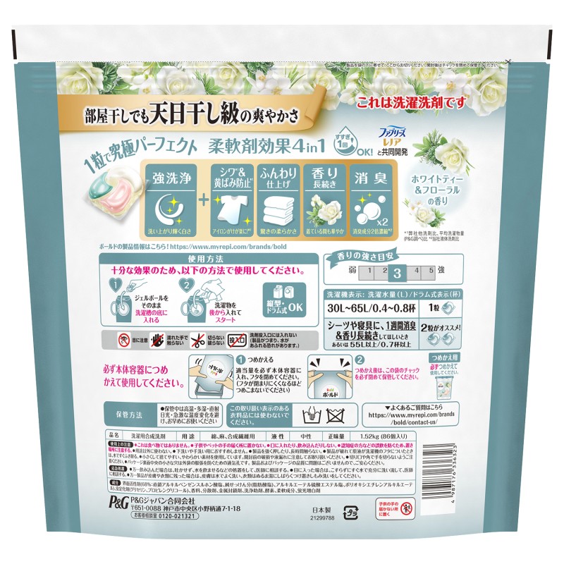 エチレンアルキルエーテル)、安定化剤(グリセリン、プロピレングリコール)、香料、分散剤、金属封鎖剤、洗浄助剤、酵素、柔軟