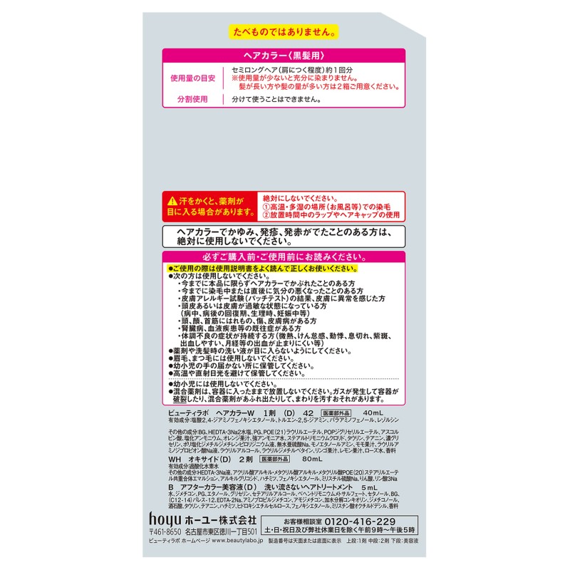 ●有効成分…塩酸2,4-ジアミノフェノキシエタノール、トルエン-2,5-ジアミン、パラアミノフェノール、レゾルシン