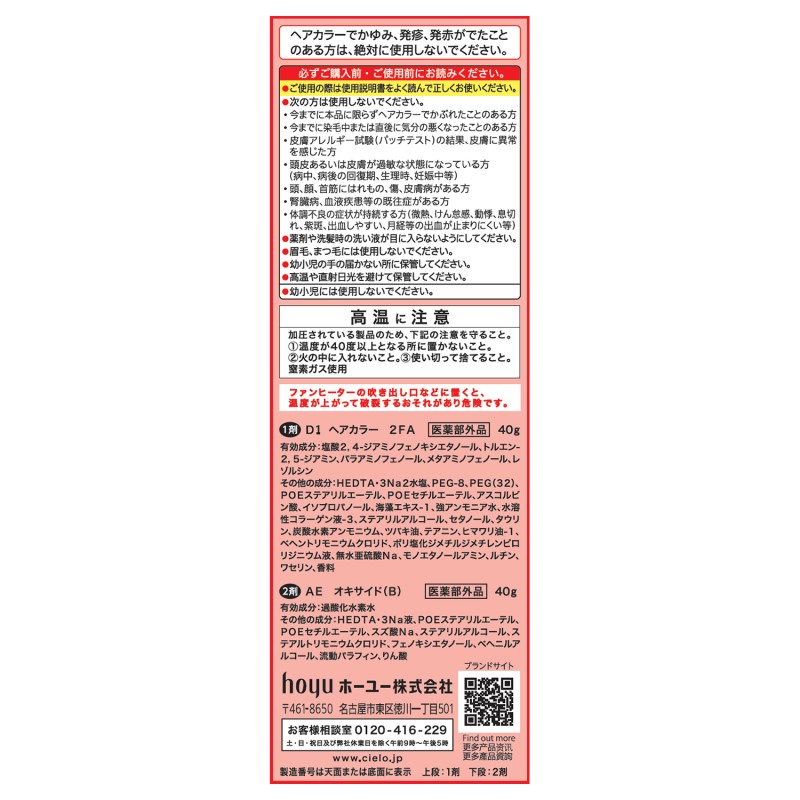 ●有効成分…塩酸2,4-ジアミノフェノキシエタノール、トルエン-2,5-ジアミン、パラアミノフェノール、メタアミノフェノ