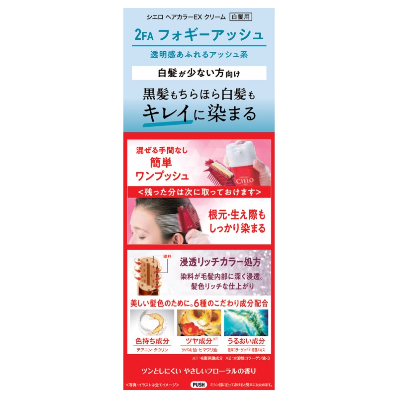 ●まぜる手間なし、簡単ワンプッシュ。・自然なツヤを感じる美しい染め上がり。