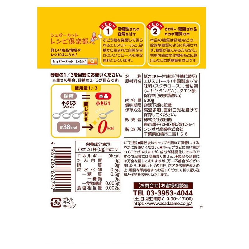 ぶどう糖を発酵して得られる「エリスリトール」と、砂糖から生まれた自然な甘さの「スクラロース」をバランスよく配合した、砂糖