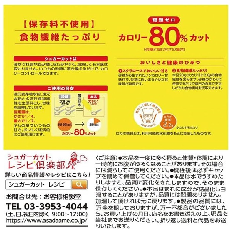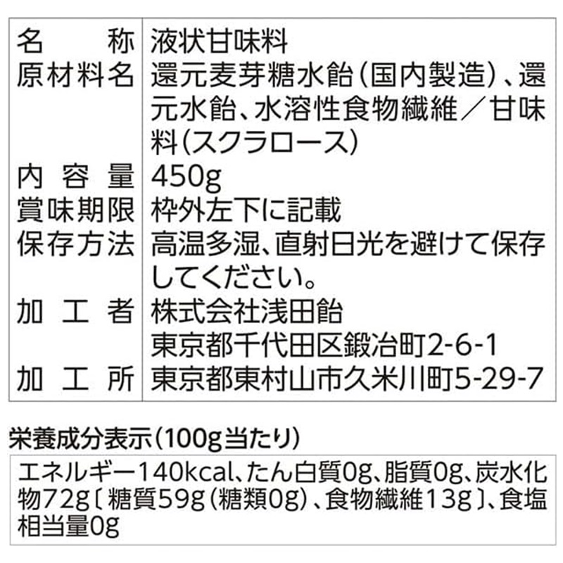 砂糖を使用せず、エネルギーとして利用されにくい還元麦芽糖水飴と水溶性食物繊維を主原料とした液状の甘味料で、カロリーは砂糖