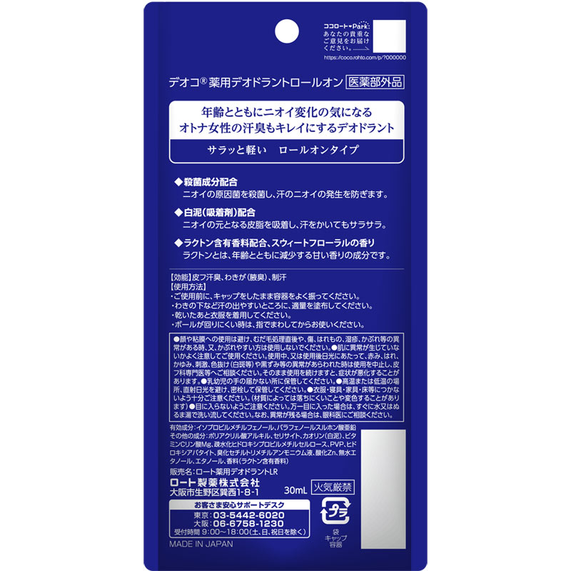 年齢とともにニオイ変化の気になるオトナ女性の汗臭もキレイにするロールオンタイプの制汗剤。