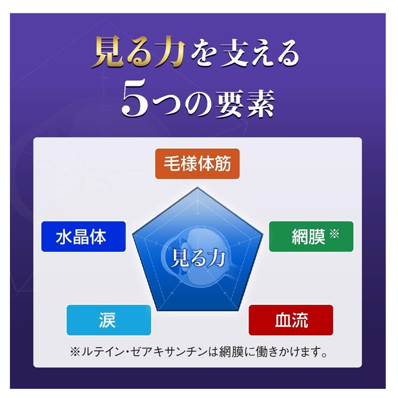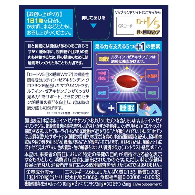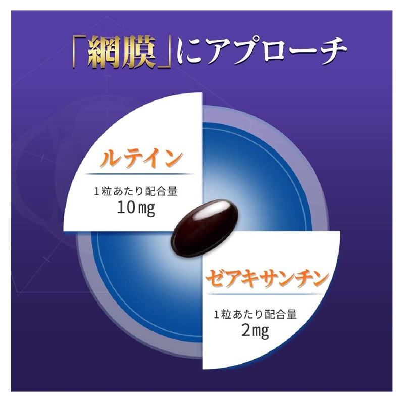 目の休養時間である睡眠に着目し、機能性関与成分ルテイン・ゼアキサンチンがくっきり見る力(コントラスト感度)をサポート、さ