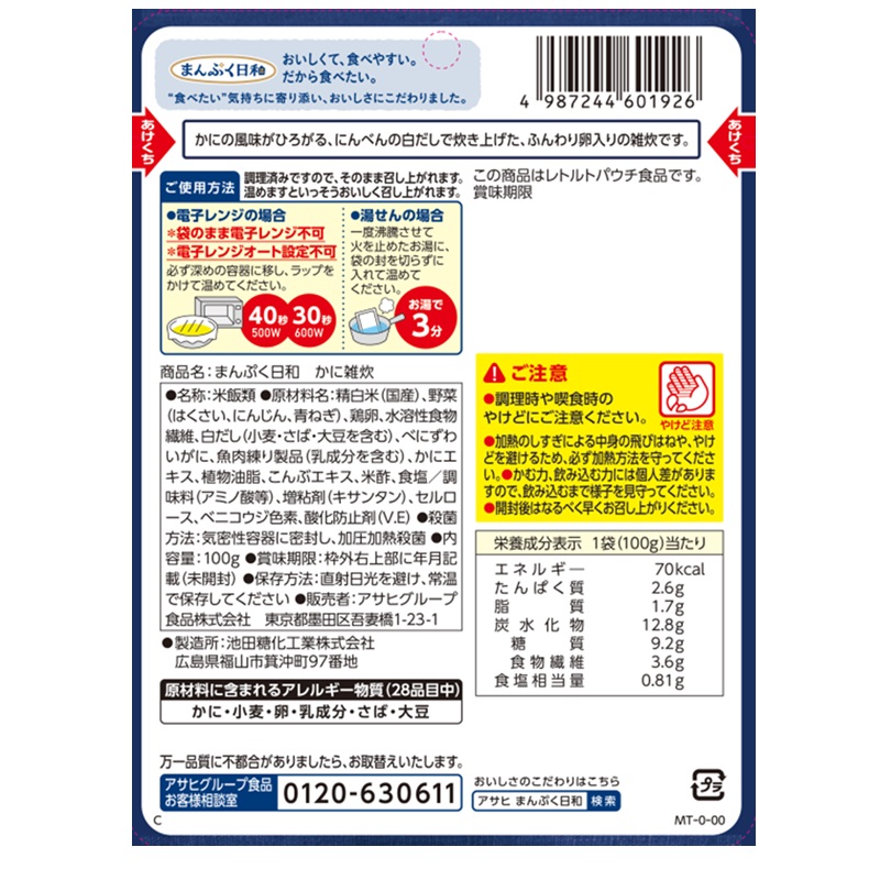 紅ずわいがに、かまぼこ、はくさい、にんじん、青ねぎ、たまご入り。