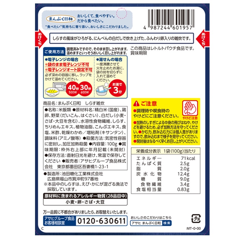 しらす、わかめ、だいこん、はくさい、たまご入り。