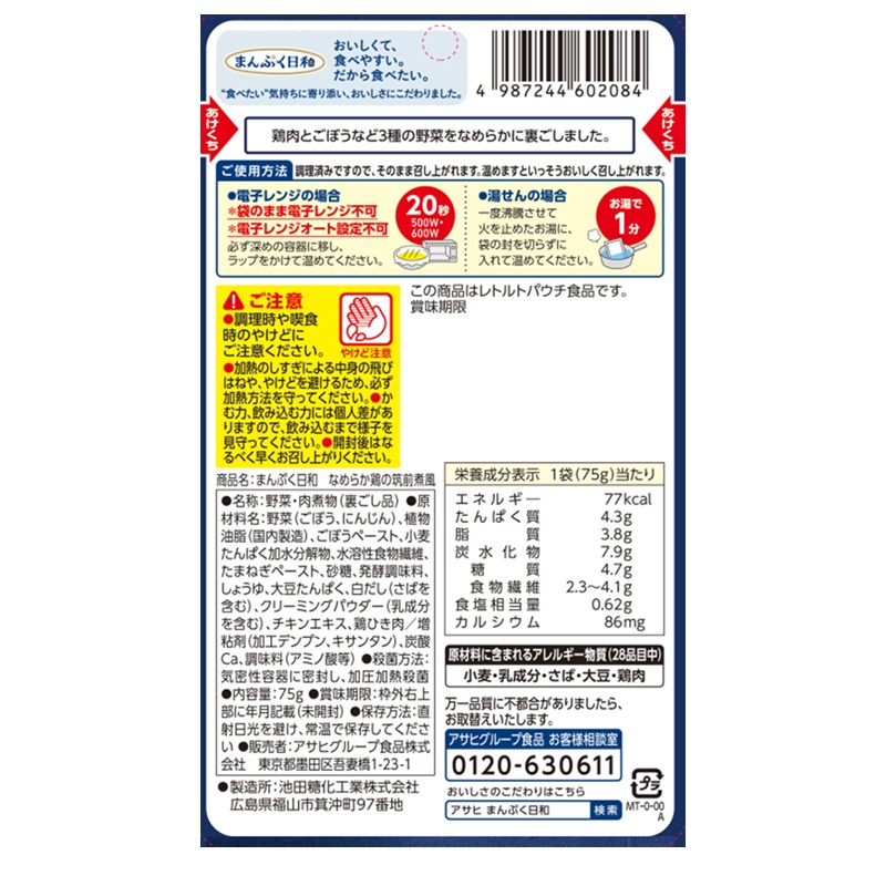 鶏肉とごぼう、にんじん、たまねぎをなめらかに裏ごしした根菜野菜のうま味広がる筑前煮風です。