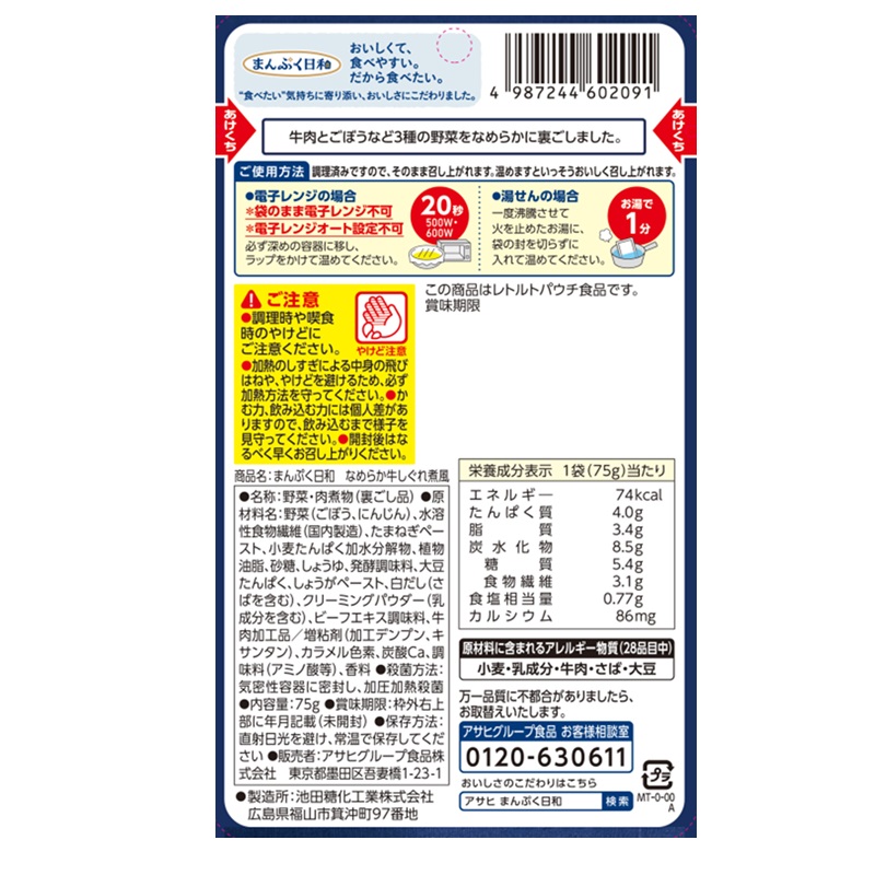 牛肉とごぼう、にんじん、たまねぎなをなめらかに裏ごしして、ほんのりしょうがが香る甘辛風味に仕上げました。